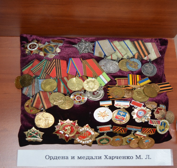 Личные наградные ордена и медали партизанки Крыма Харченко М.Л., переданные в дар школьному музею в 2019 году родственниками.